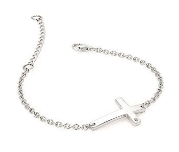 Diva Diamonds® Sideways Cross Bracelet In Sterling Silver With .01 Ct. Diamond With Rollo Chain Adjustable Between 7.5" & 6.5" And Lobster Claw Clasp