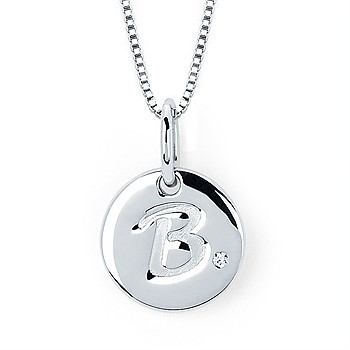 Diva Diamonds® Letter B Pendant In Sterling Silver With .01 Ct. Diamond With 18" Box Chain (Adjustable To 16") And Lobster Claw Clasp Sterling Silver Diamond Initial B Pendant with 16" Chain and 2" Extender