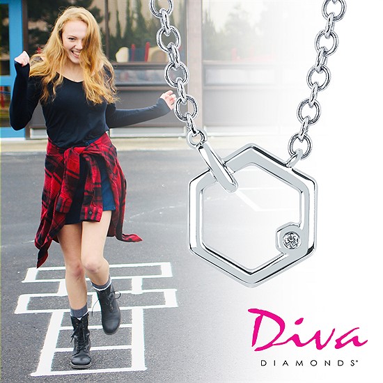 Diva Diamonds® Hexagon Necklace In Sterling Silver With .01 Ct. Diamond With 18" Attached Chain