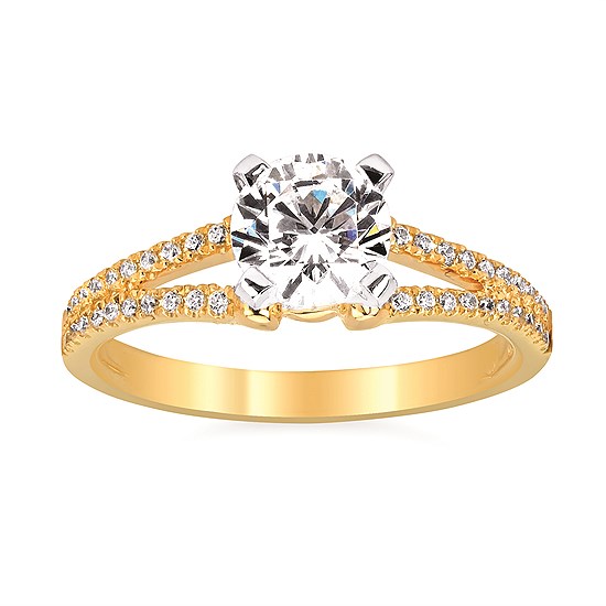 Engagement Ring Forever ElegantĀ® 1/6 Ctw. Diamond Semi Mount shown with 1 Ct. Round Center Diamond in 14K Gold