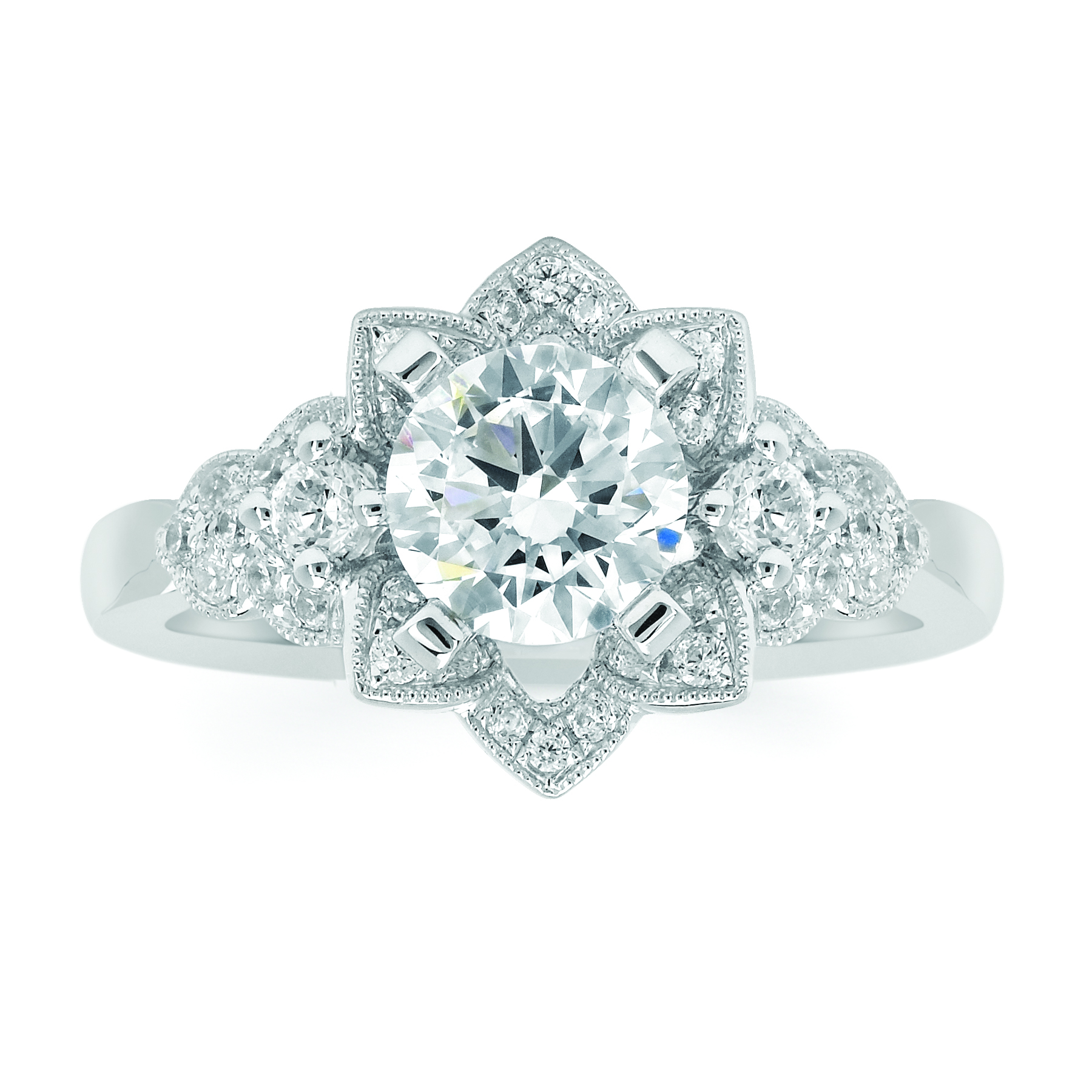 Engagement Ring Forever ElegantĀ® 1/3 Ctw. Diamond Semi Mount shown with 1 1/4 Ct. Round Center Diamond in 14K Gold
