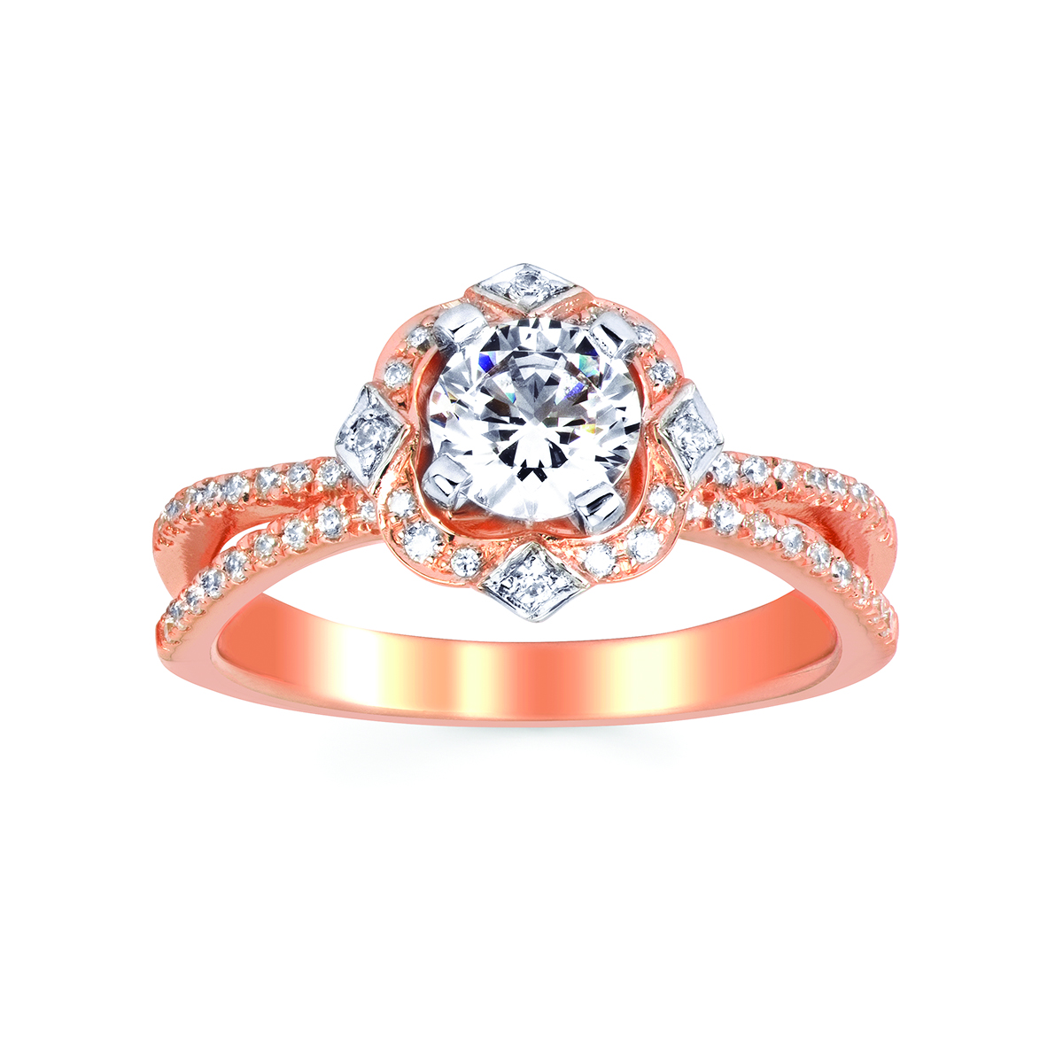 Engagement Ring Forever ElegantĀ® 1/4 Ctw. Diamond Semi Mount shown with 3/4 Ct. Round Center Diamond in 14K Gold