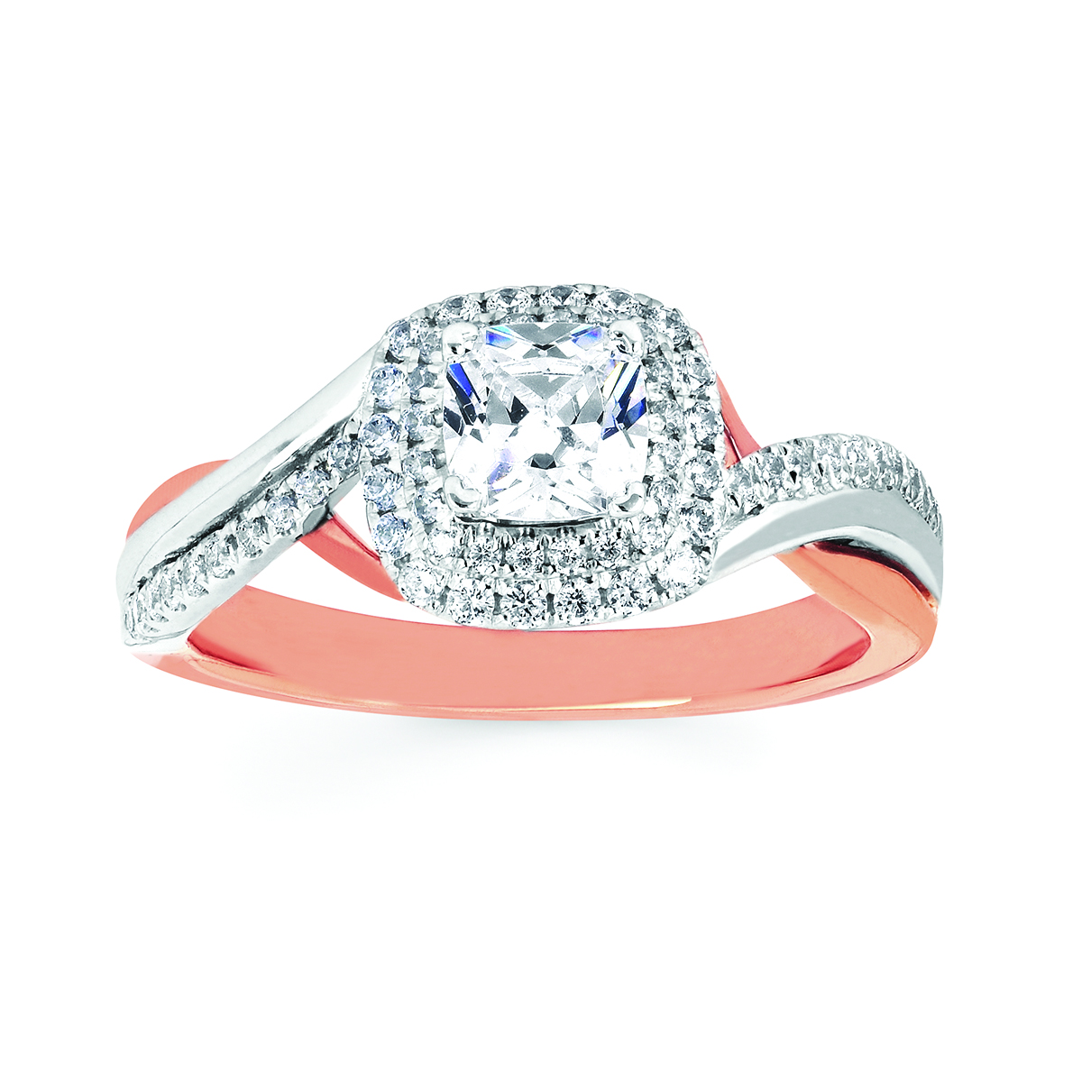 Engagement Ring Forever ElegantĀ® 1/3 Ctw. Diamond Semi Mount shown with 1/2 Ct. Cushion Center Diamond in 14K Gold