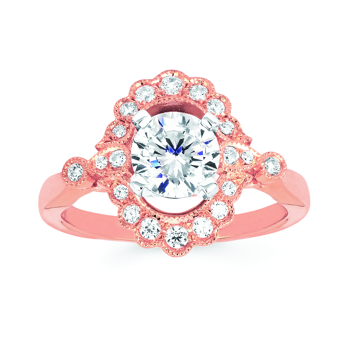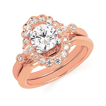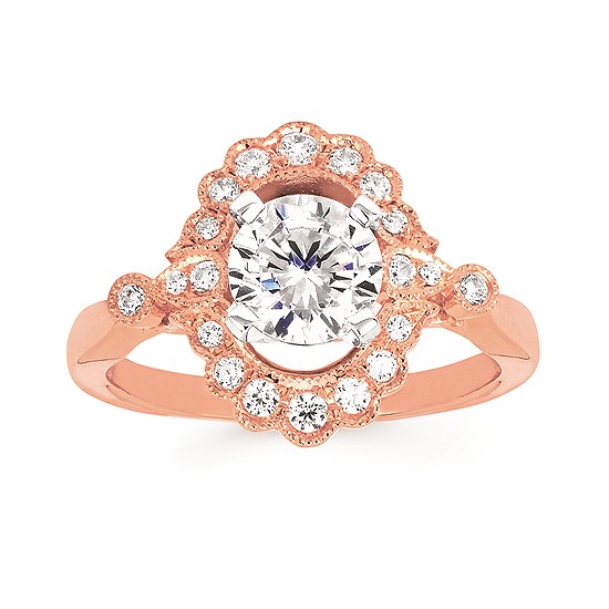 Engagement Ring Forever ElegantĀ® 1/4 Ctw. Diamond Semi Mount shown with 1 Ct. Round Center Diamond in 14K Gold