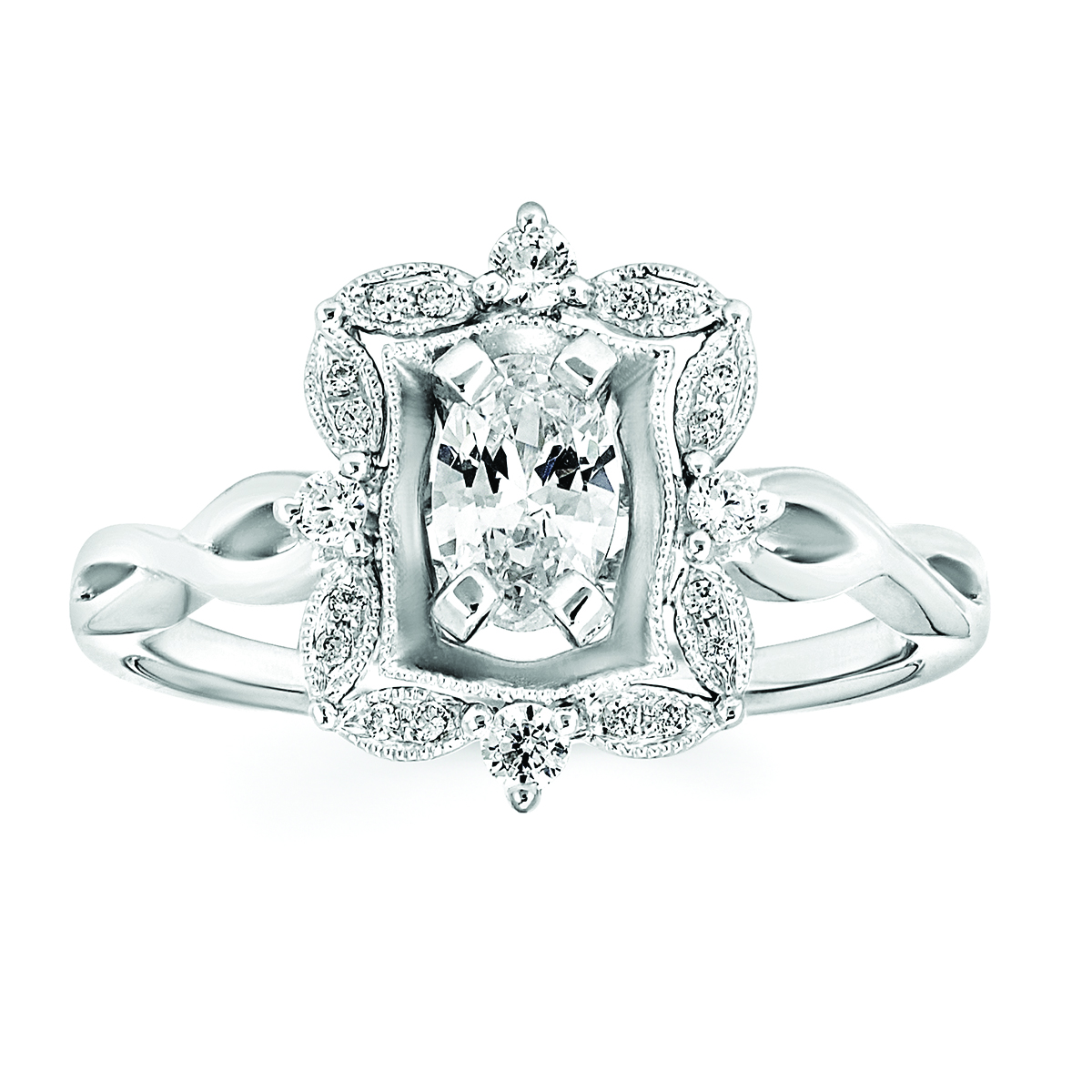 Engagement Ring Forever ElegantĀ® 1/8 Ctw. Diamond Semi Mount shown with 1/2 Ct. Oval Center Diamond in 14K Gold