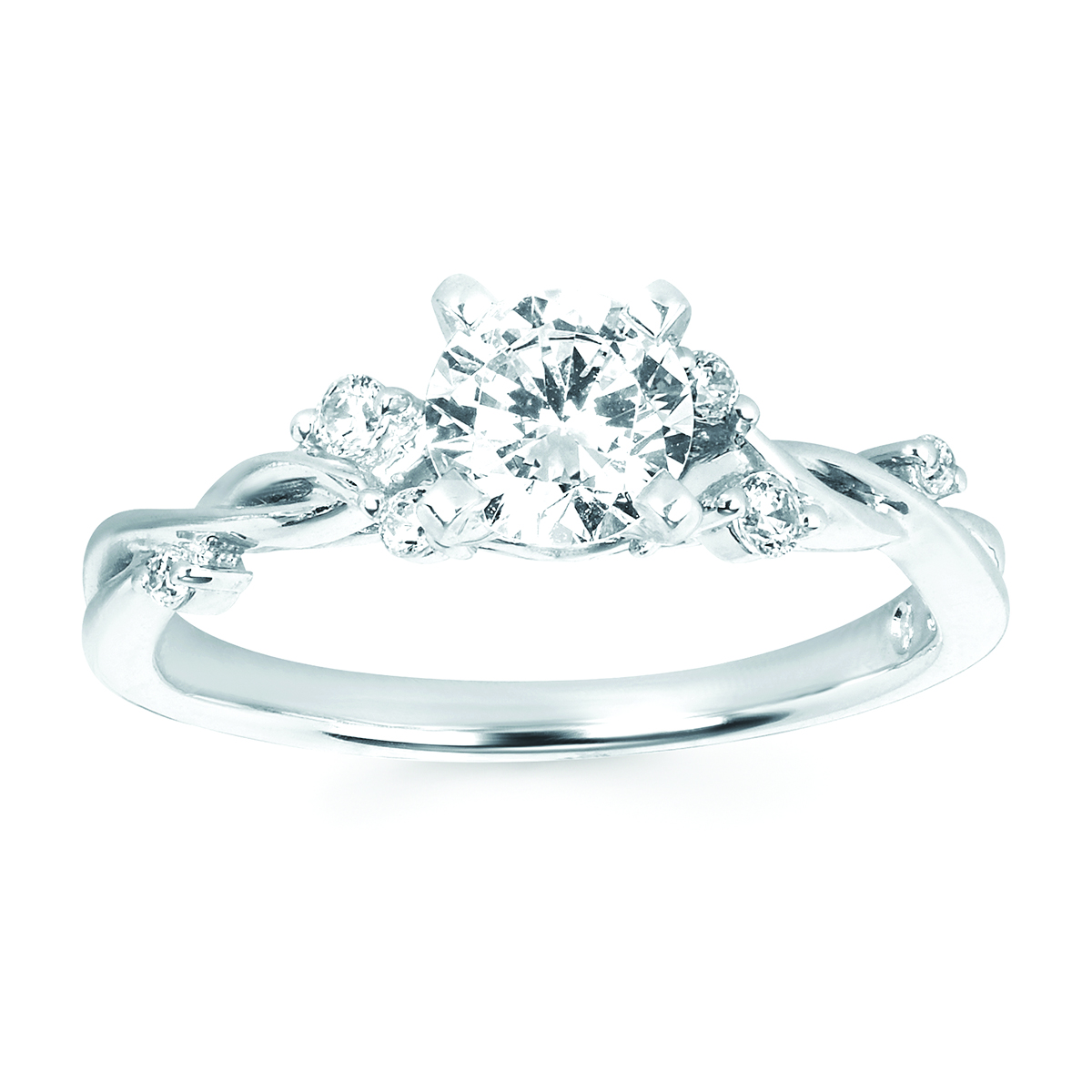 Engagement Ring Forever ElegantĀ® 1/10 Ctw. Diamond Semi Mount shown with 3/4 Ct. Round Center Diamond in 14K Gold