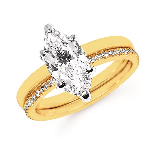 Classic Bridal: Hidden Halo .05 Ctw. Diamond Semi Mount Shown With 1 Ct. Marquise Cut Center Diamond In 14K Gold