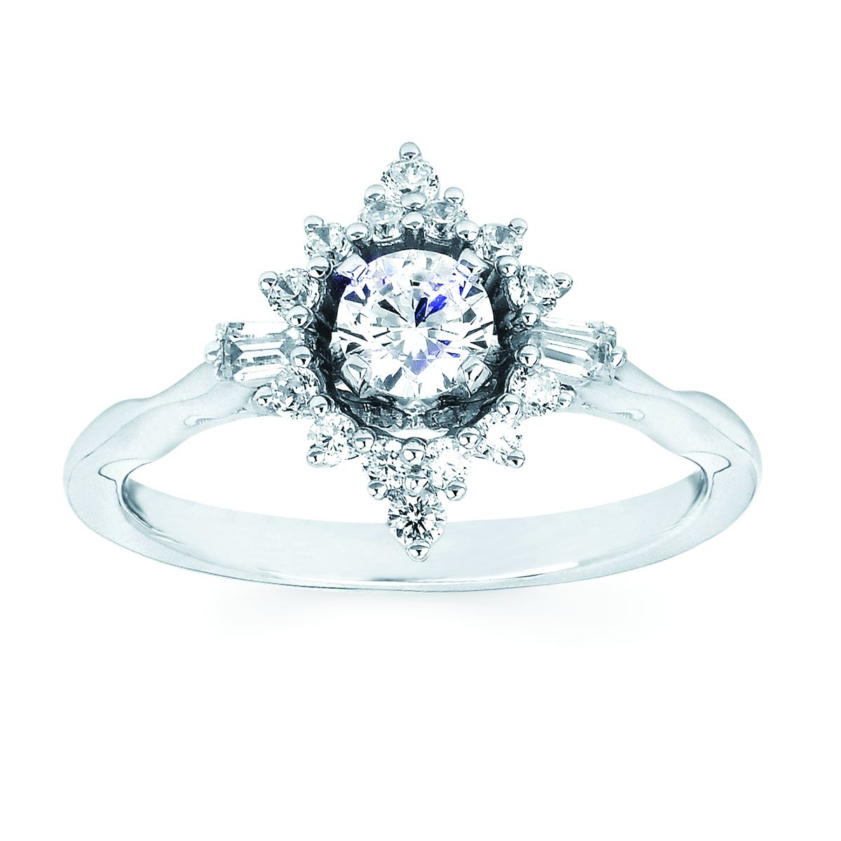 Engagement Ring Halo: 1/4 Ctw. Diamond Semi Mount shown with 1/3 Ct. Round Center Diamond in 14K Gold