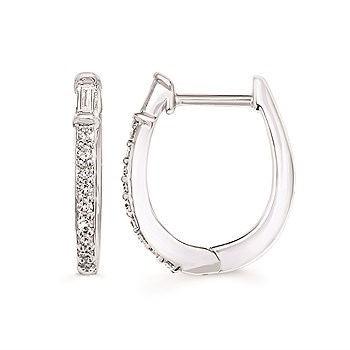 1/5 Ctw. Diamond Baguette & Round Hoop Earrings In Sterling Silver