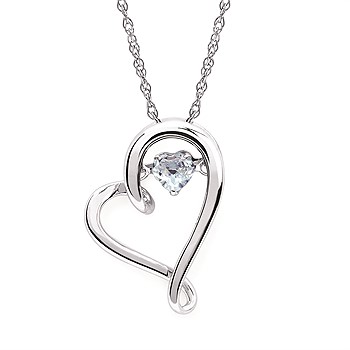 Shimmering Diamonds® Heart Pendant With 4Mm Aqua Birthstone In Sterling Silver